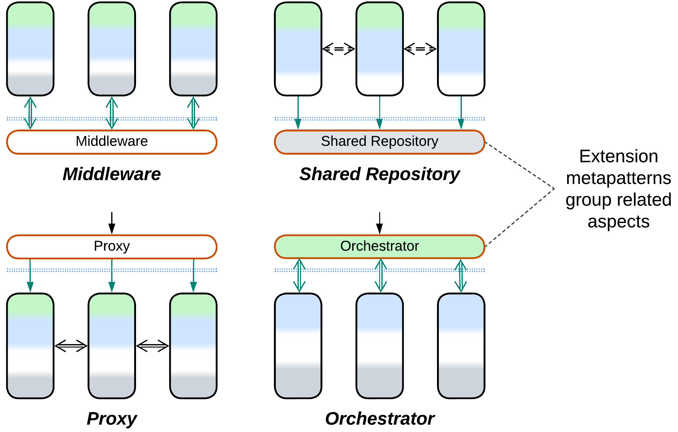 - Backends for Frontends dedicate one or two components (a Proxy and/or Orchestrator) per each kind of client.